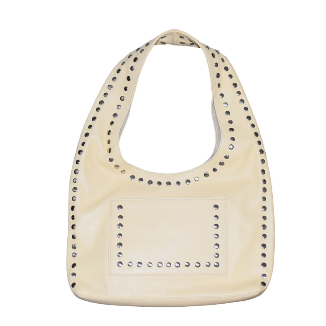 Available in Black, Brown, Navy, and Cream, these bags are produced in small quantities, making each piece a unique treasure. No two are exactly alike—each bag features slightly different stud patterns while maintaining a cohesive, timeless look.